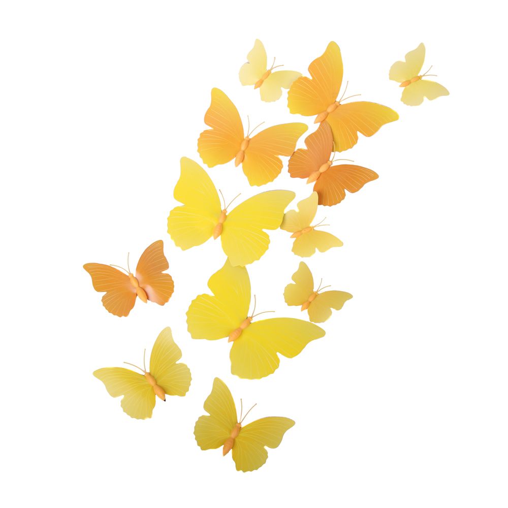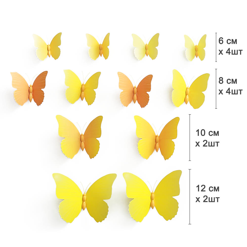 Бабочки на магните 12 шт пластик желтые