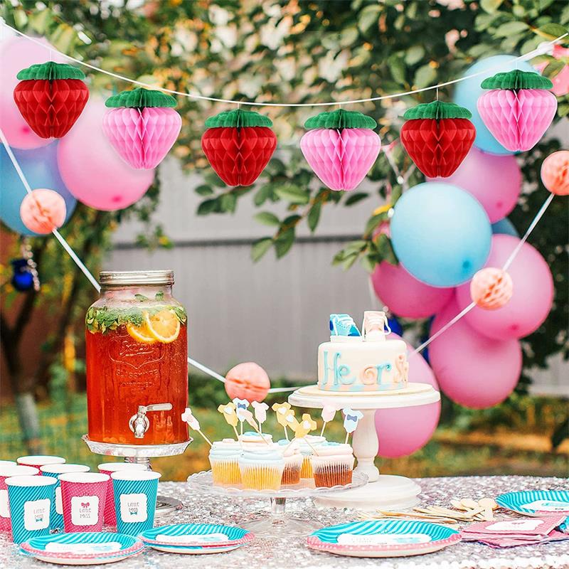Бумажное украшение "Клубника" 20х20 см, розовый