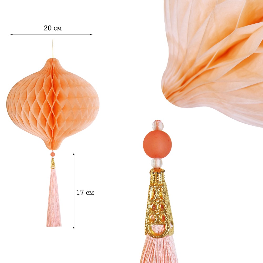 Бумажное украшение Шар-соты с кисточкой, персиковый - 1шт.