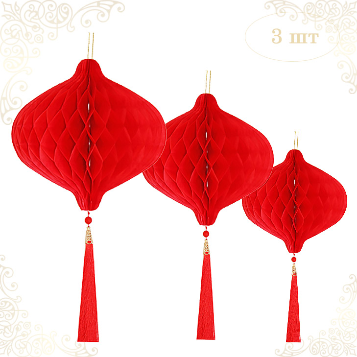 Бумажное украшение Шары-соты с кисточкой НАБОР 3 шт, красный