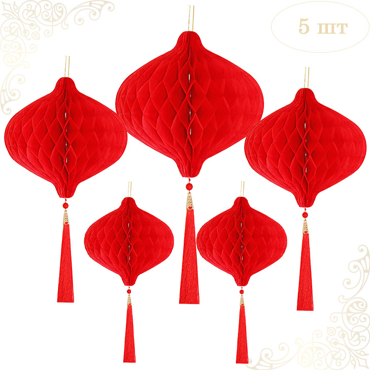 НАБОР бумажное украшение Шары-соты с кисточкой, красный - 5шт: