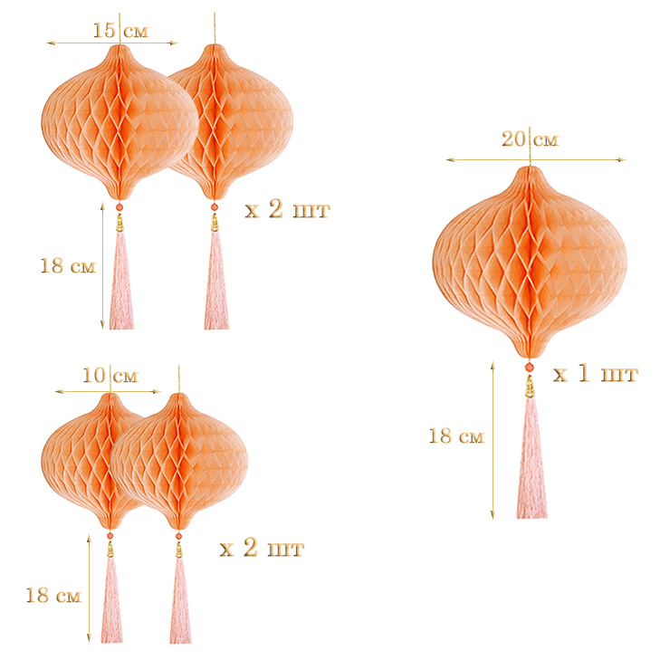 НАБОР бумажное украшение Шары-соты с кисточкой, персиковый - 5шт:
