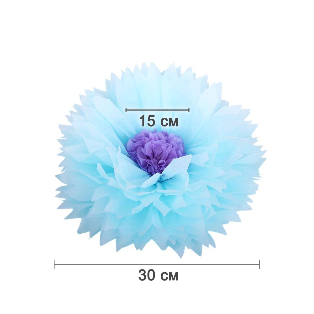 Бумажный цветок 30 см голубой+светло-сиреневый