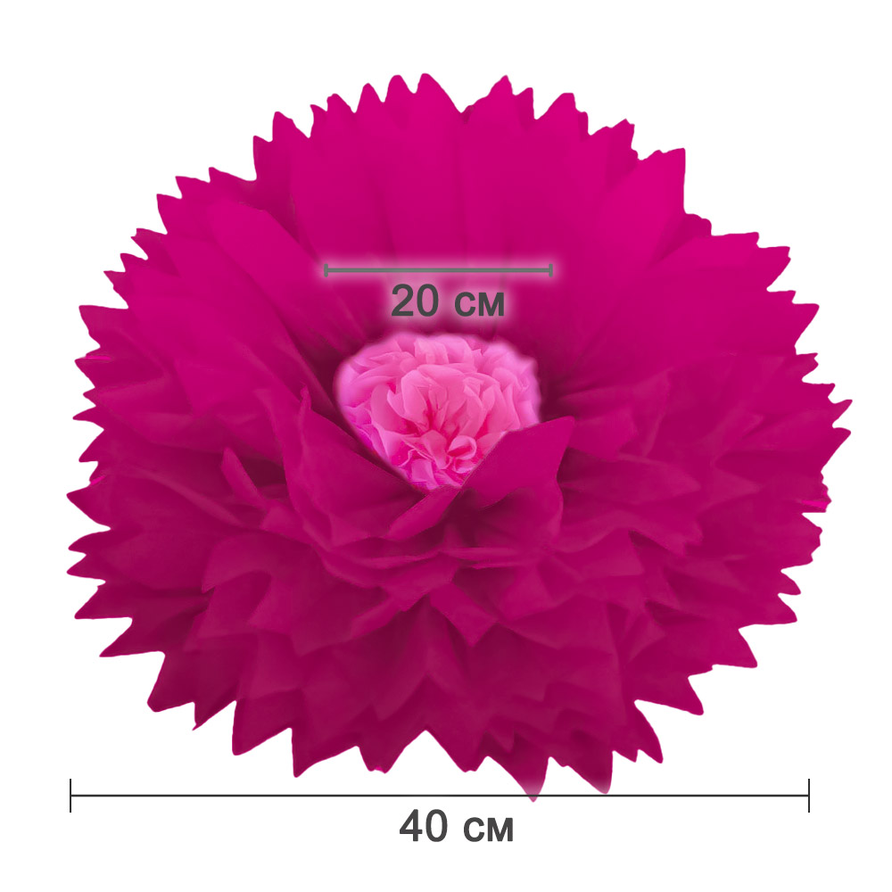 Бумажный цветок 40 см малиновый+розовый