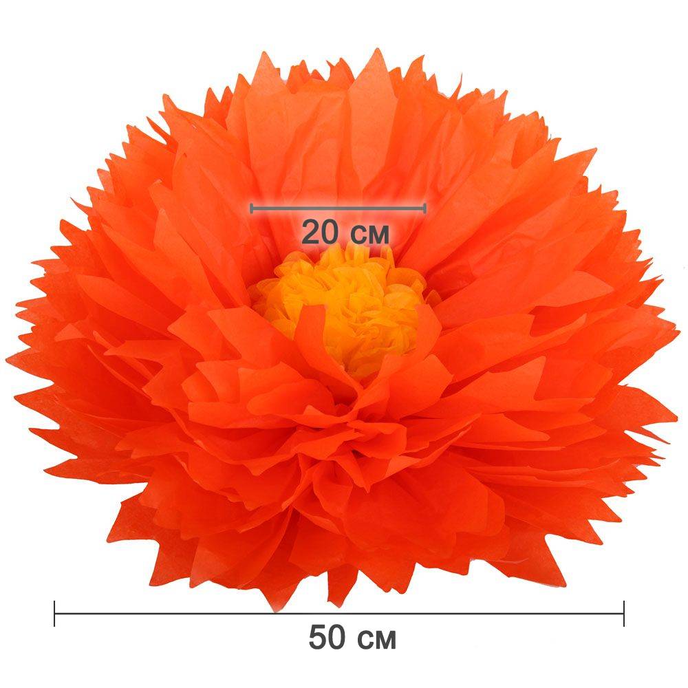 Бумажный цветок 50 см оранжевый+ярко-желтый