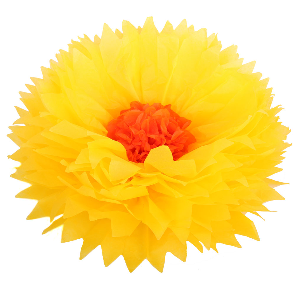 Бумажный цветок 50 см ярко-желтый+оранжевый