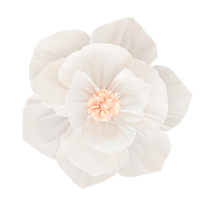 Бумажный цветок гофрированный 30 см белый+персиковый