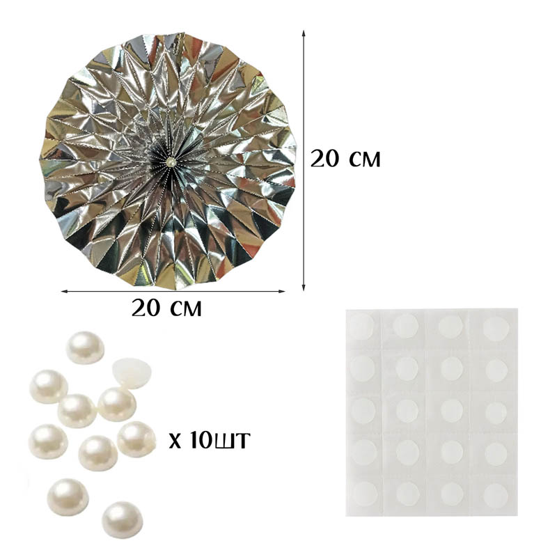 Фанты фольгированные с жемчужиной НАБОР 10шт х 20см, серебро