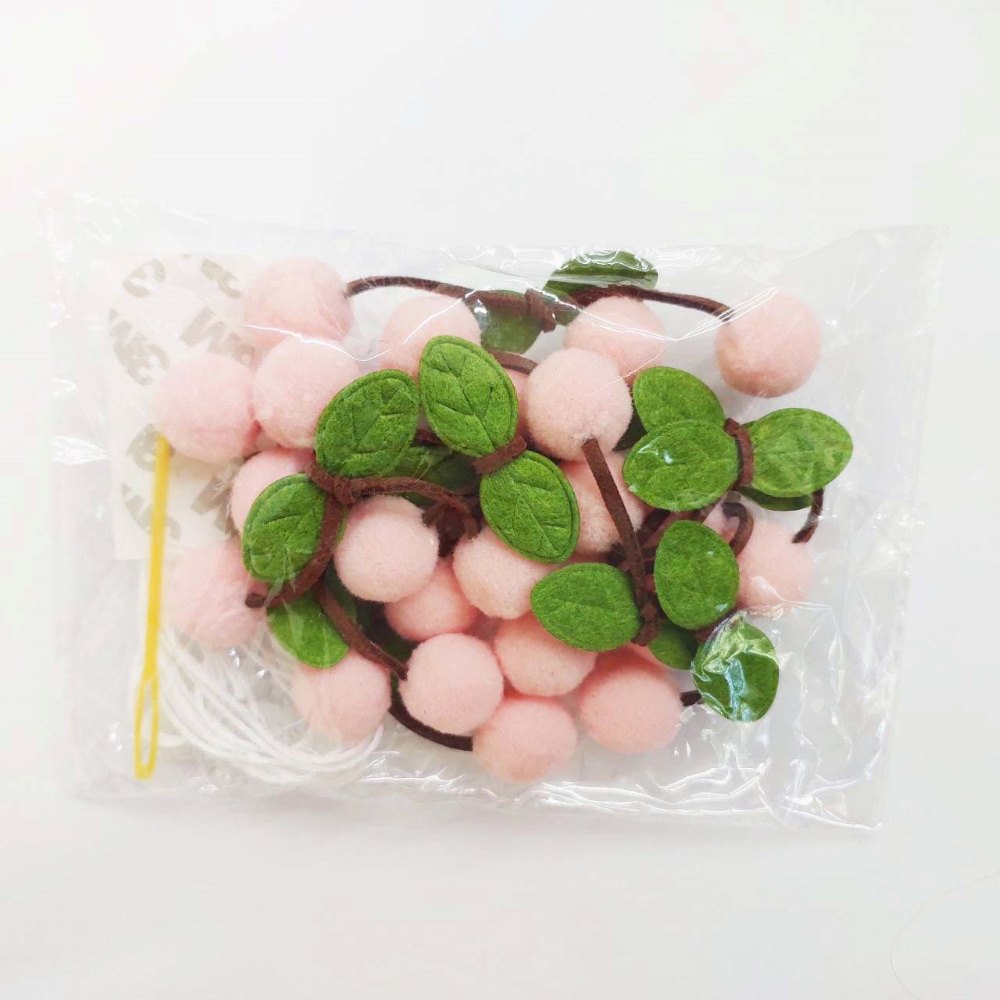 Гирлянда на веревке "Вишенки"  2 см х 24 шт х 2,3 м, "св.розовый" - 1 шт.