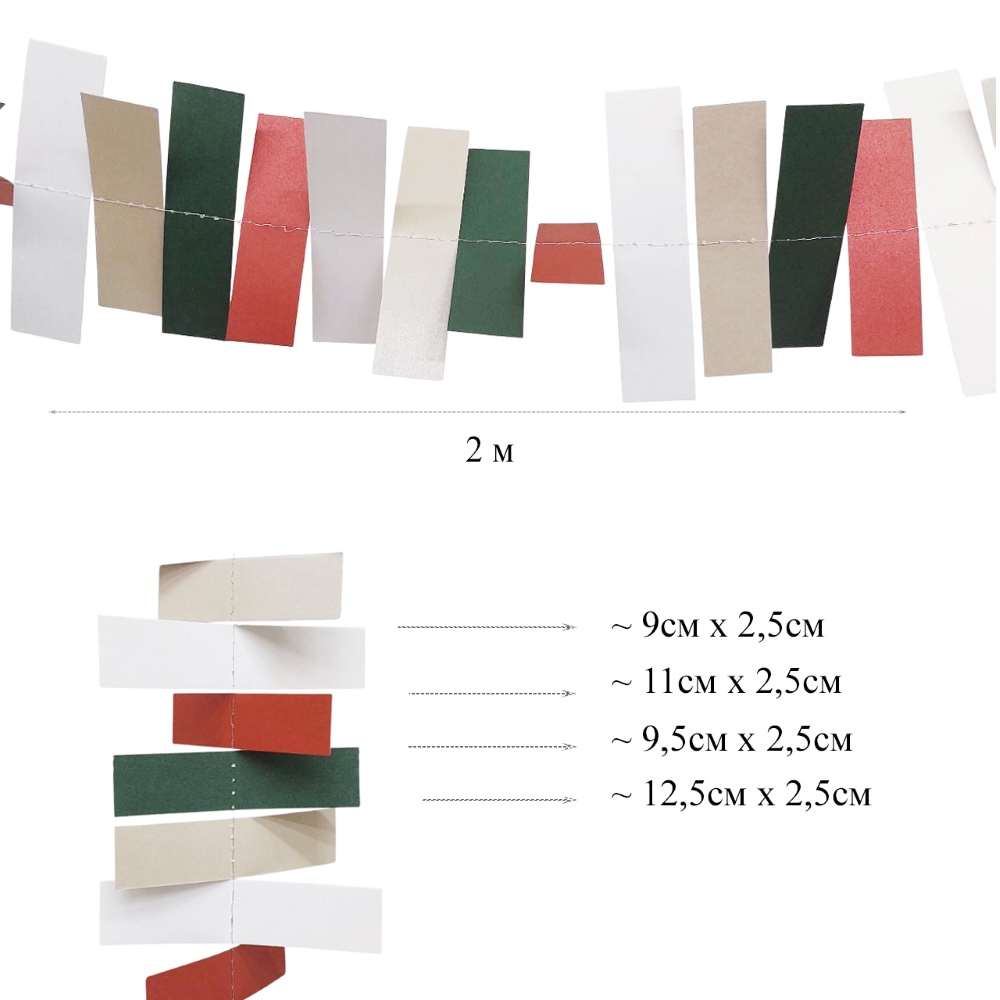 Гирлянда "Прямоугольники" 2 м белый+серебро+зеленый+красный
