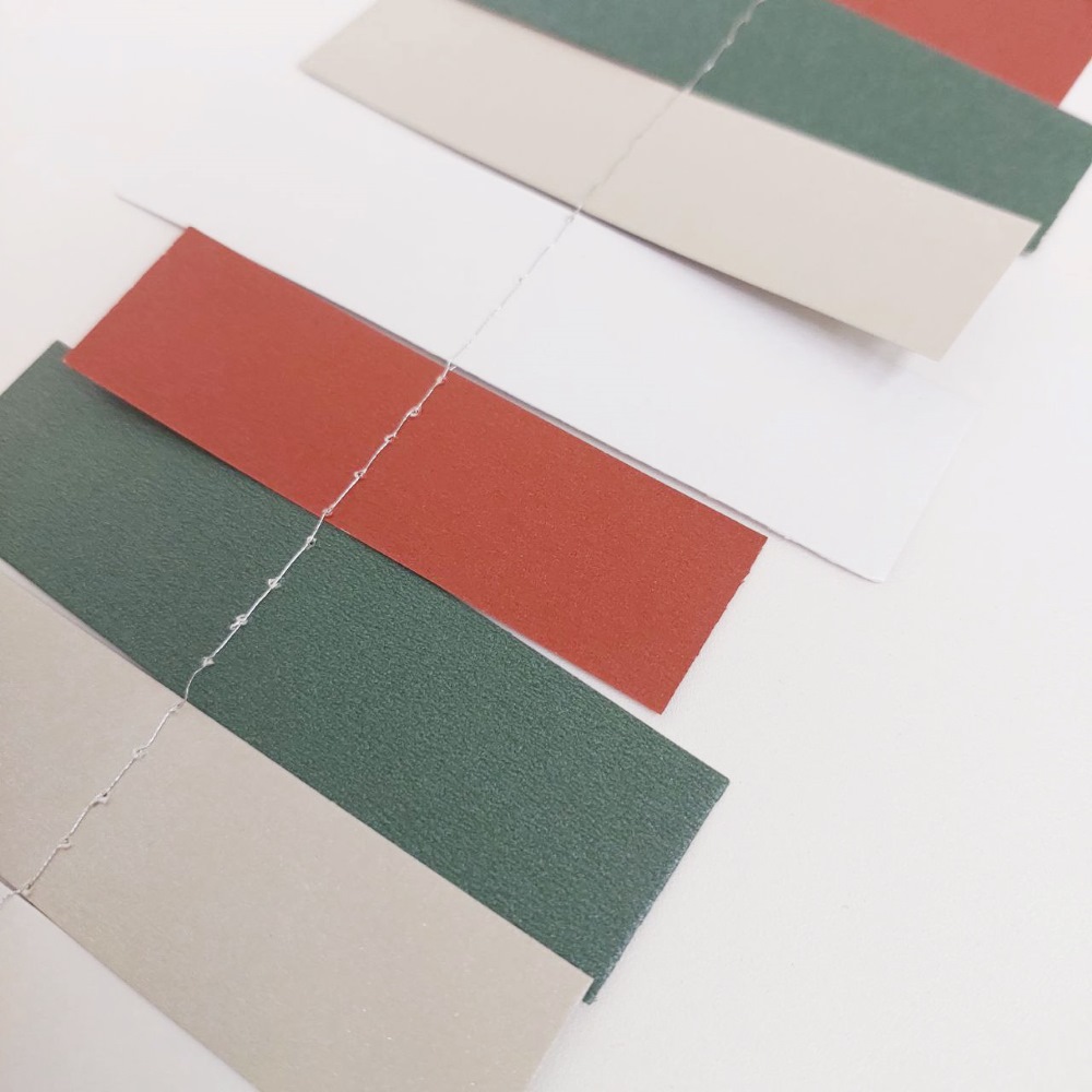 Состоит из четырёх оттенков: белого, серебристого, зелёного и красного.