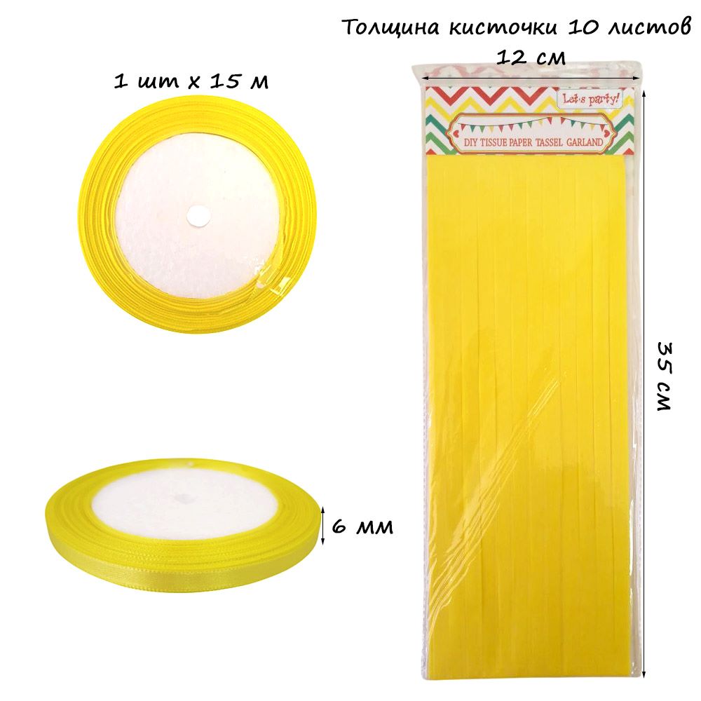 Гирлянда тассел 12 кисточек по 10 листов, желтый