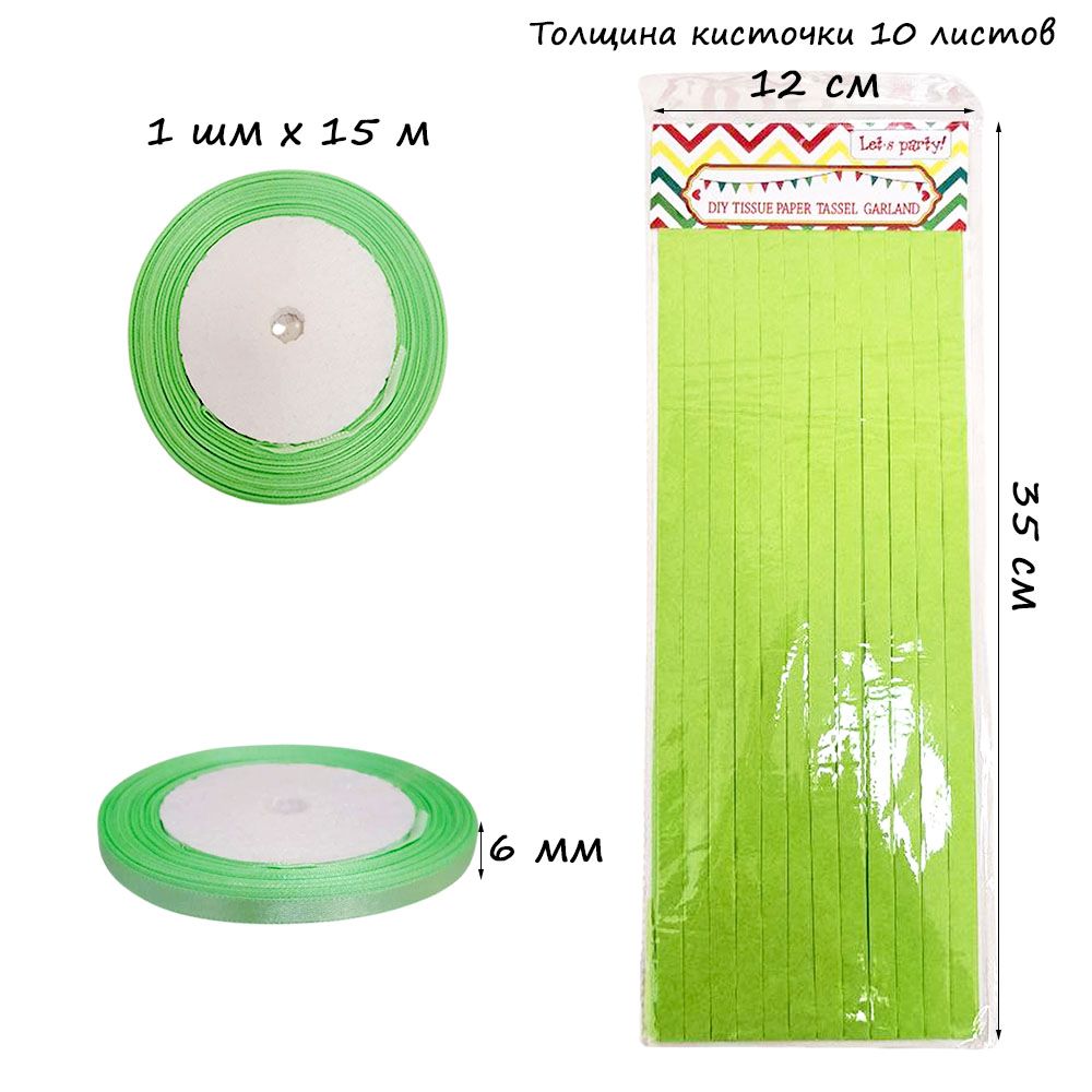 Гирлянда тассел 12 кисточек по 10 листов, салатовый