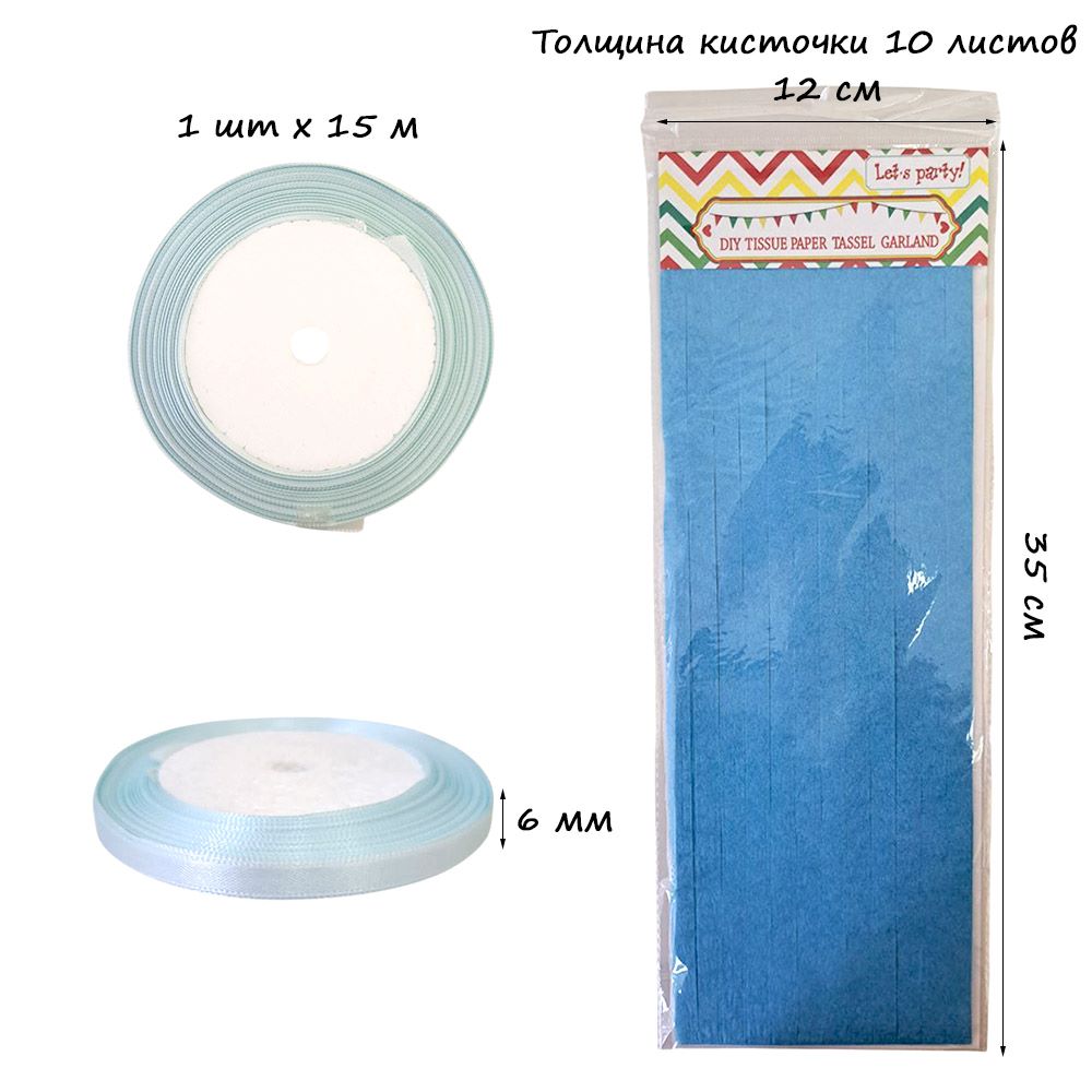 Гирлянда тассел 12 кисточек по 10 листов, синий