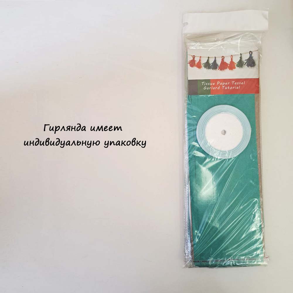 Гирлянда тассел 12 кисточек по 5 листов, изумрудный
