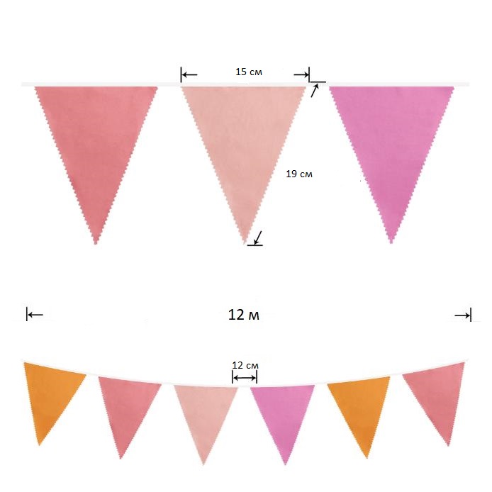 Гирлянда состоит из 42 флажков, из них длина вымпела 9 м, а длина лямок с обеих сторон 45-50 см