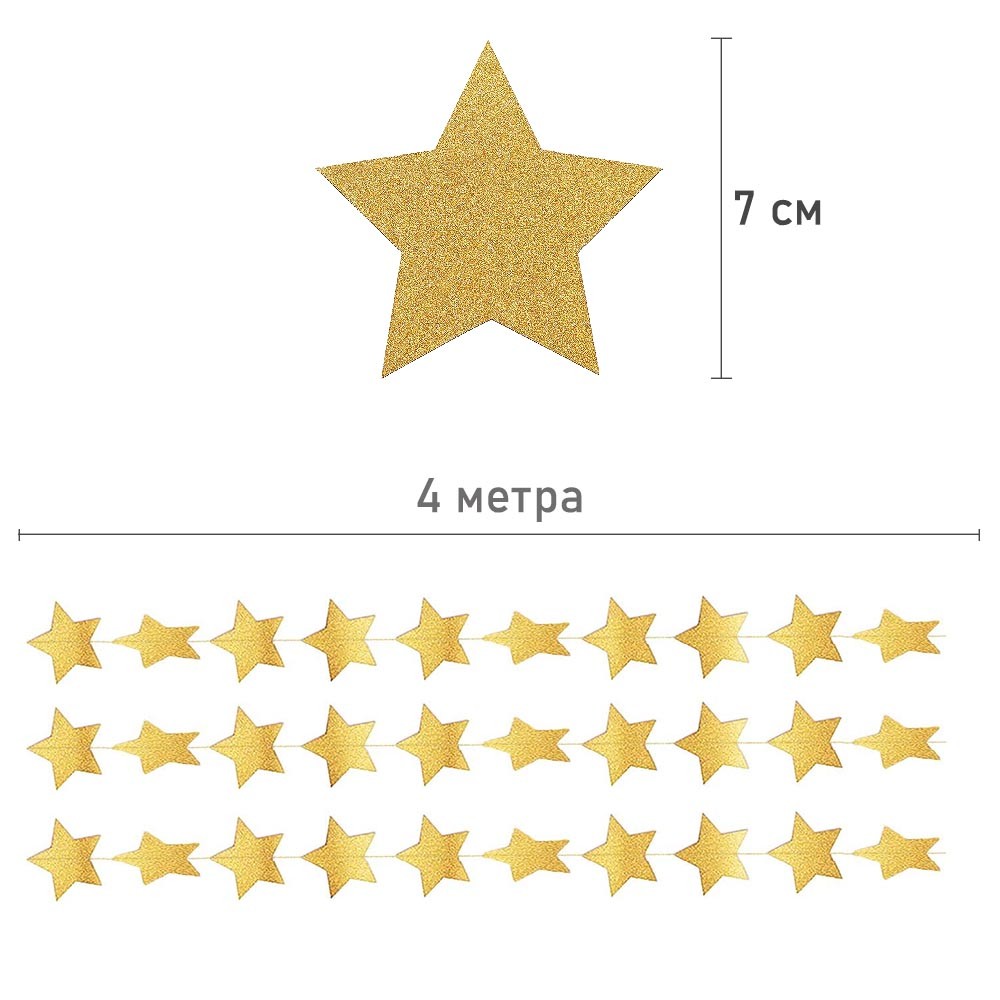 Гирлянда "Звезды" блеск 7 см х 4 м, золото