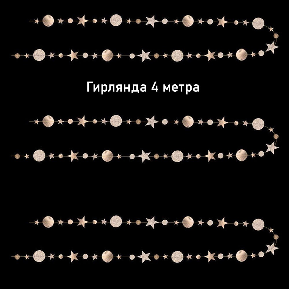 Гирлянда Звезды/Кружочки 4 м металлик/блеск, шампань