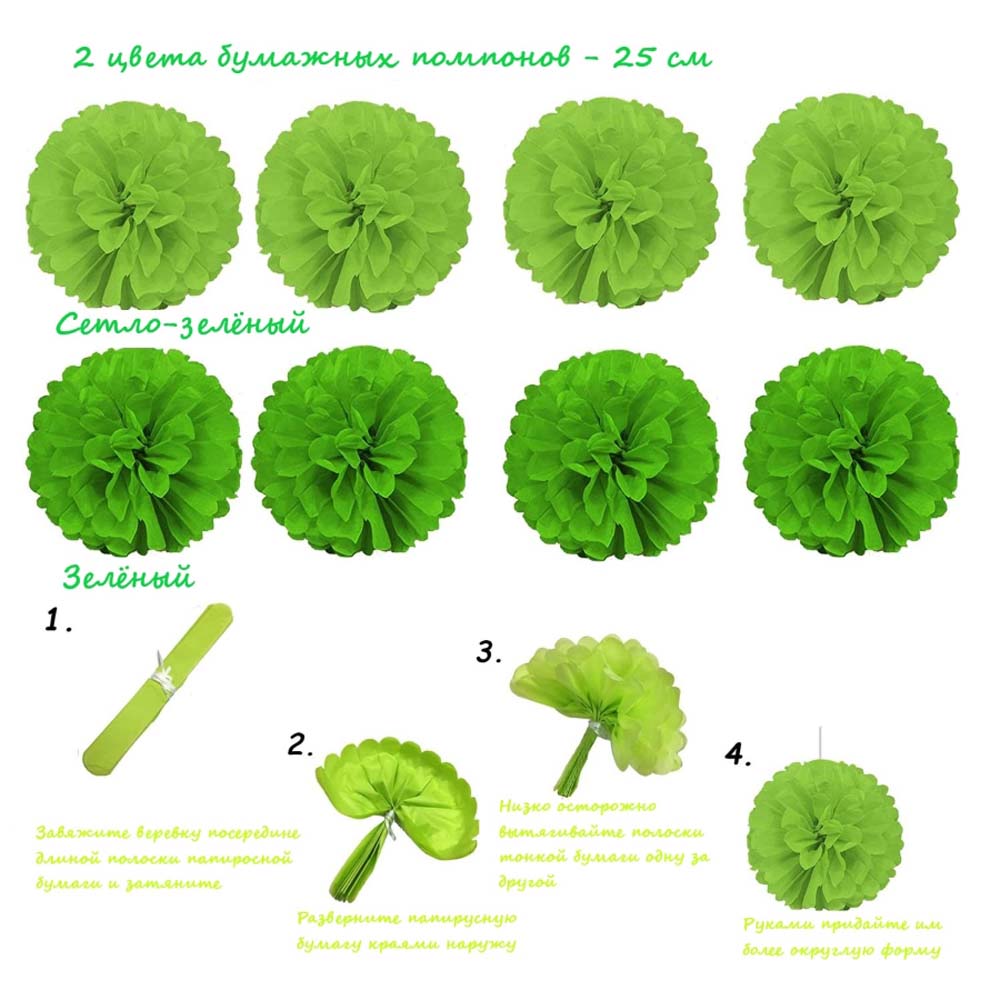 Помпоны из бумаги тишью 8 шт: