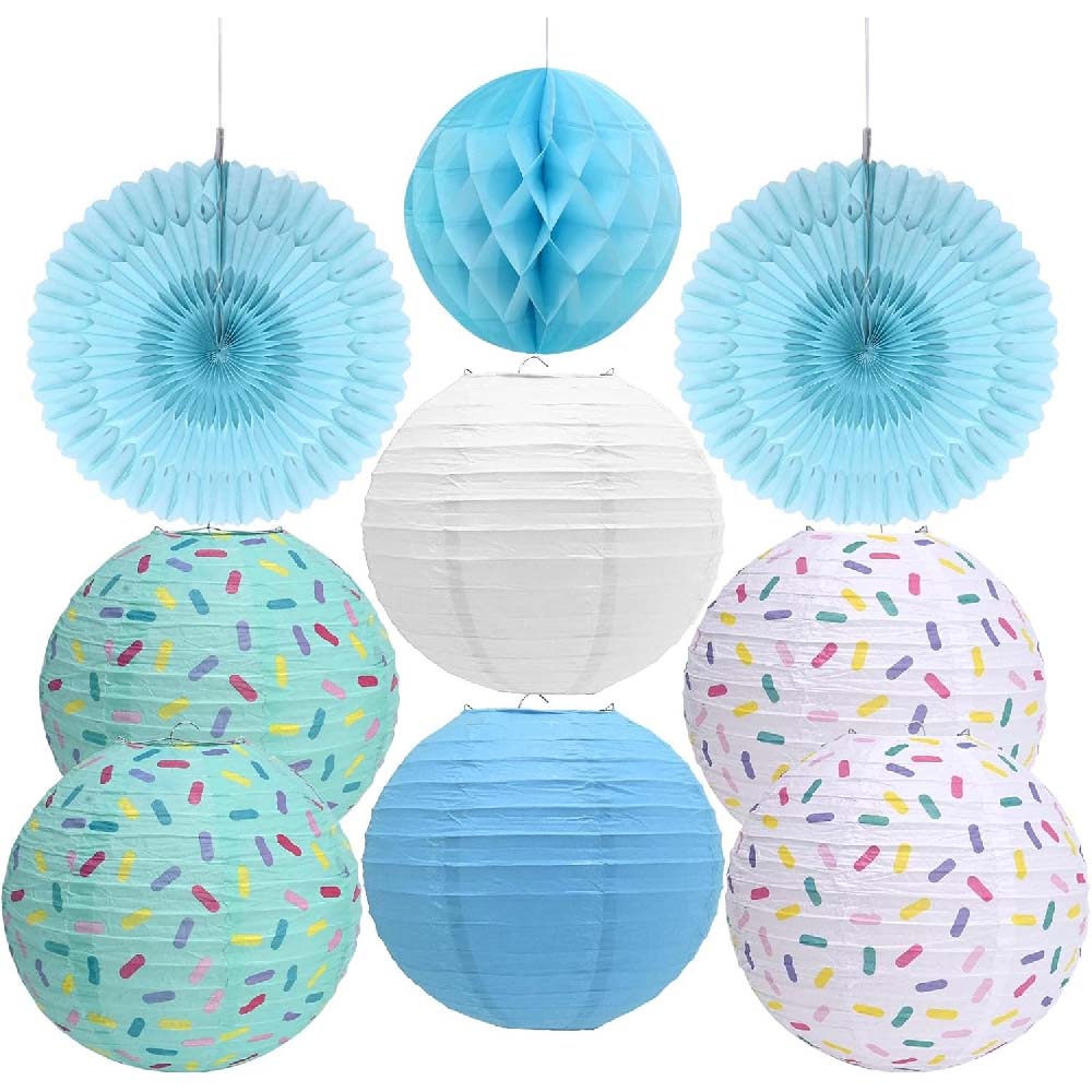 Подвесные бумажные фонарики синий и белый, 2 шт: