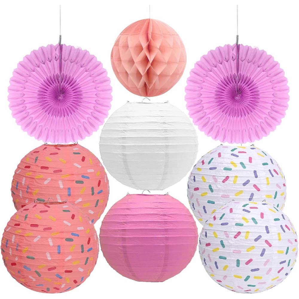 Бумажные подвесные фонарики, 2 шт (белый и розовый):