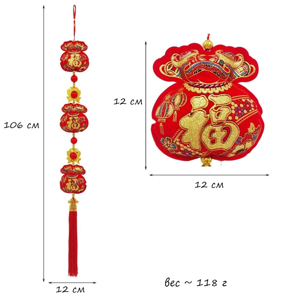 Китайская подвеска 12х106см, Денежные мешки