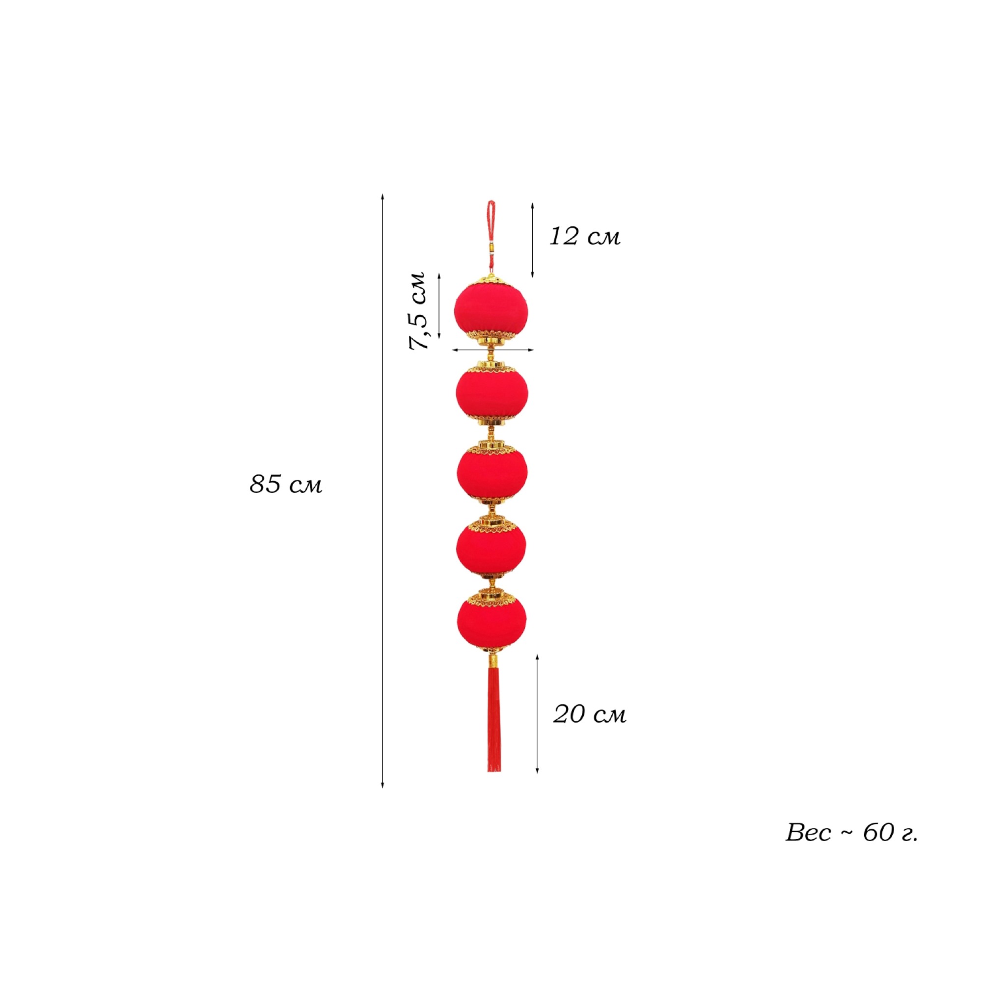 Китайская подвеска 7,5х85см, Фонарики