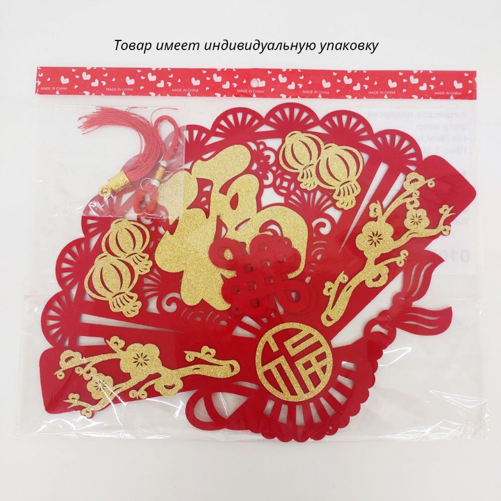 Китайская подвеска фетр веер 42х70см, Успех