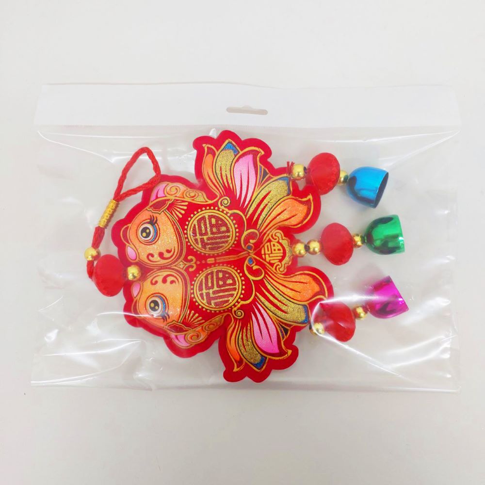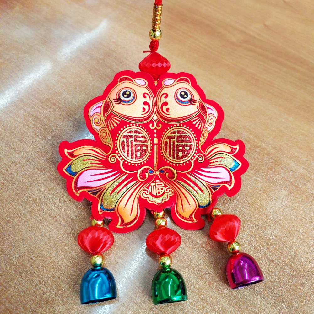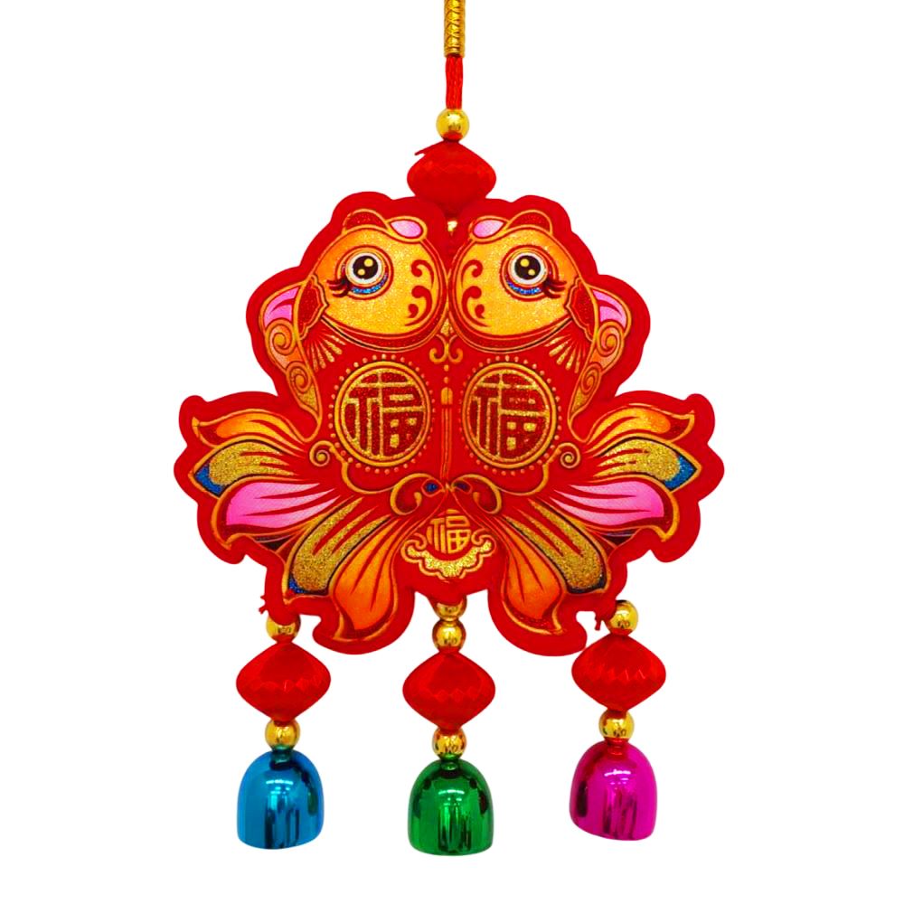 Китайская подвеска с колокольчиками 15х34см, Две Рыбки - 1 шт