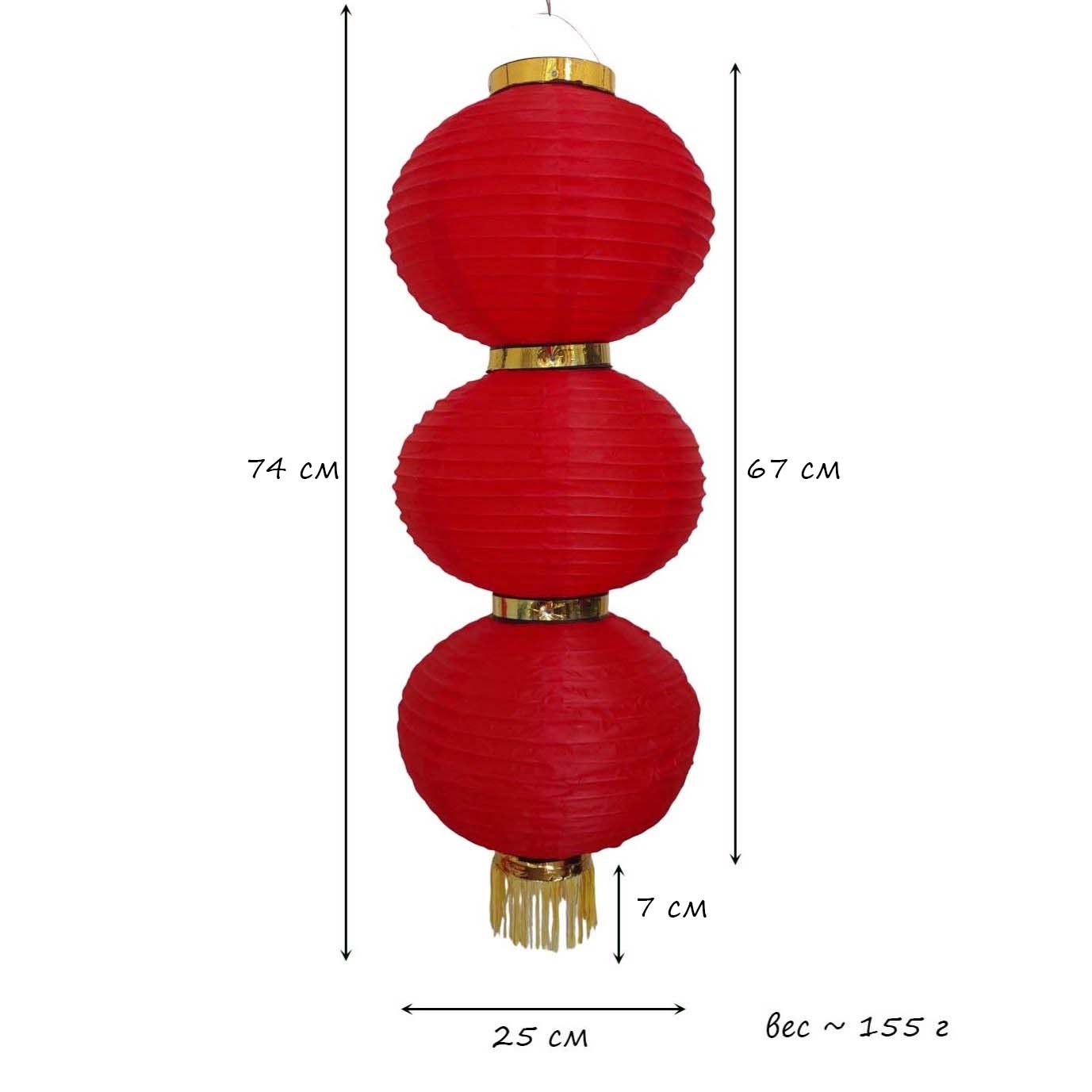 Круглый китайский фонарь состоит из трех ярусов диаметром 25 см каждый.