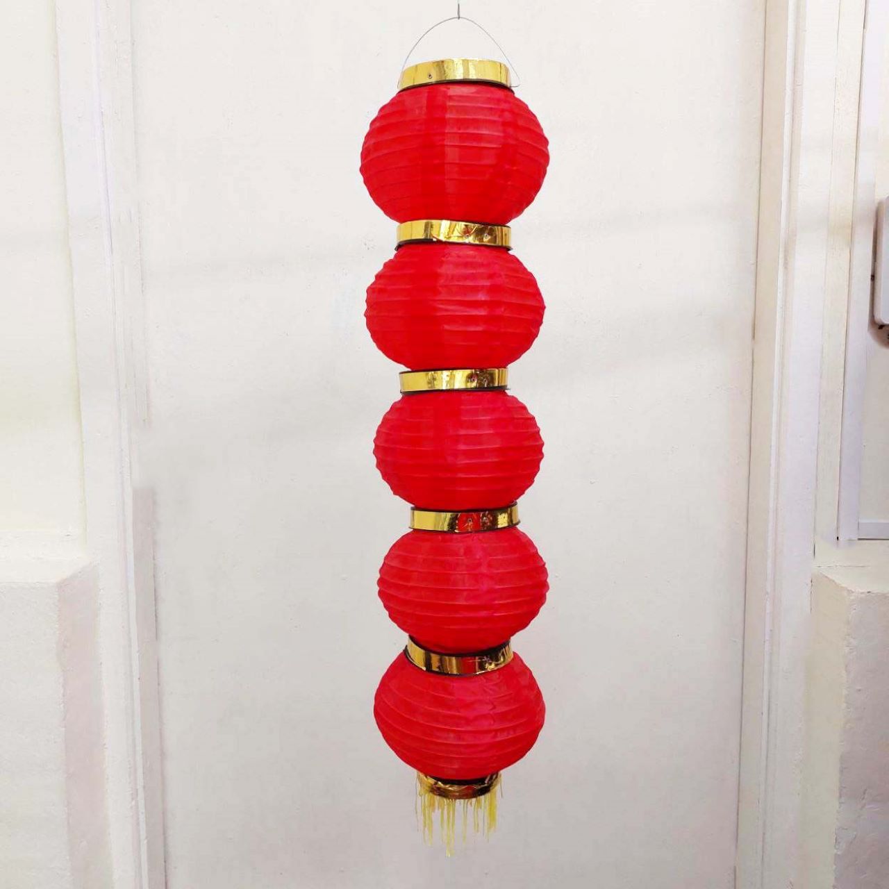 Круглый китайский фонарь состоит из пяти ярусов диаметром 20 см каждый.