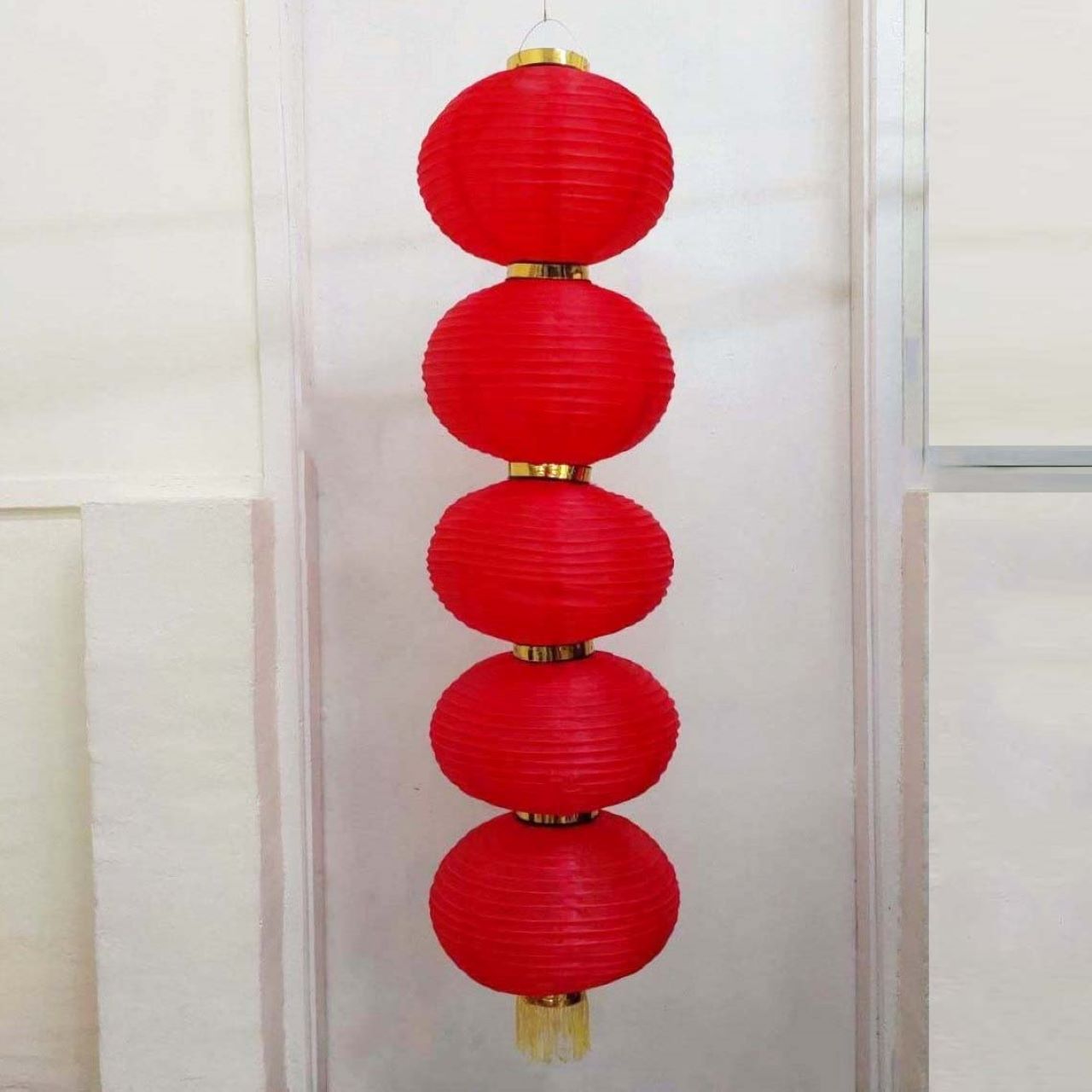 Круглый китайский фонарь состоит из пяти ярусов диаметром 35 см каждый.