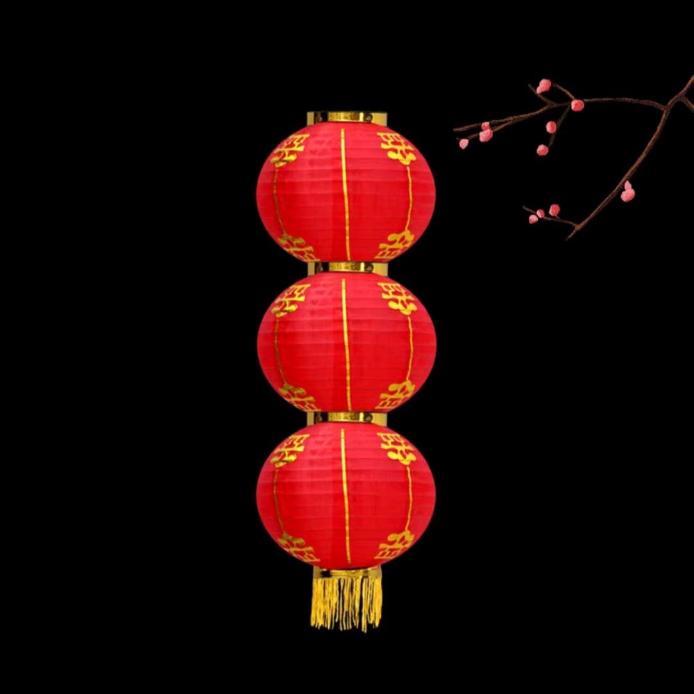 Китайский фонарь Круглый с рисунком, 3 яруса 25см