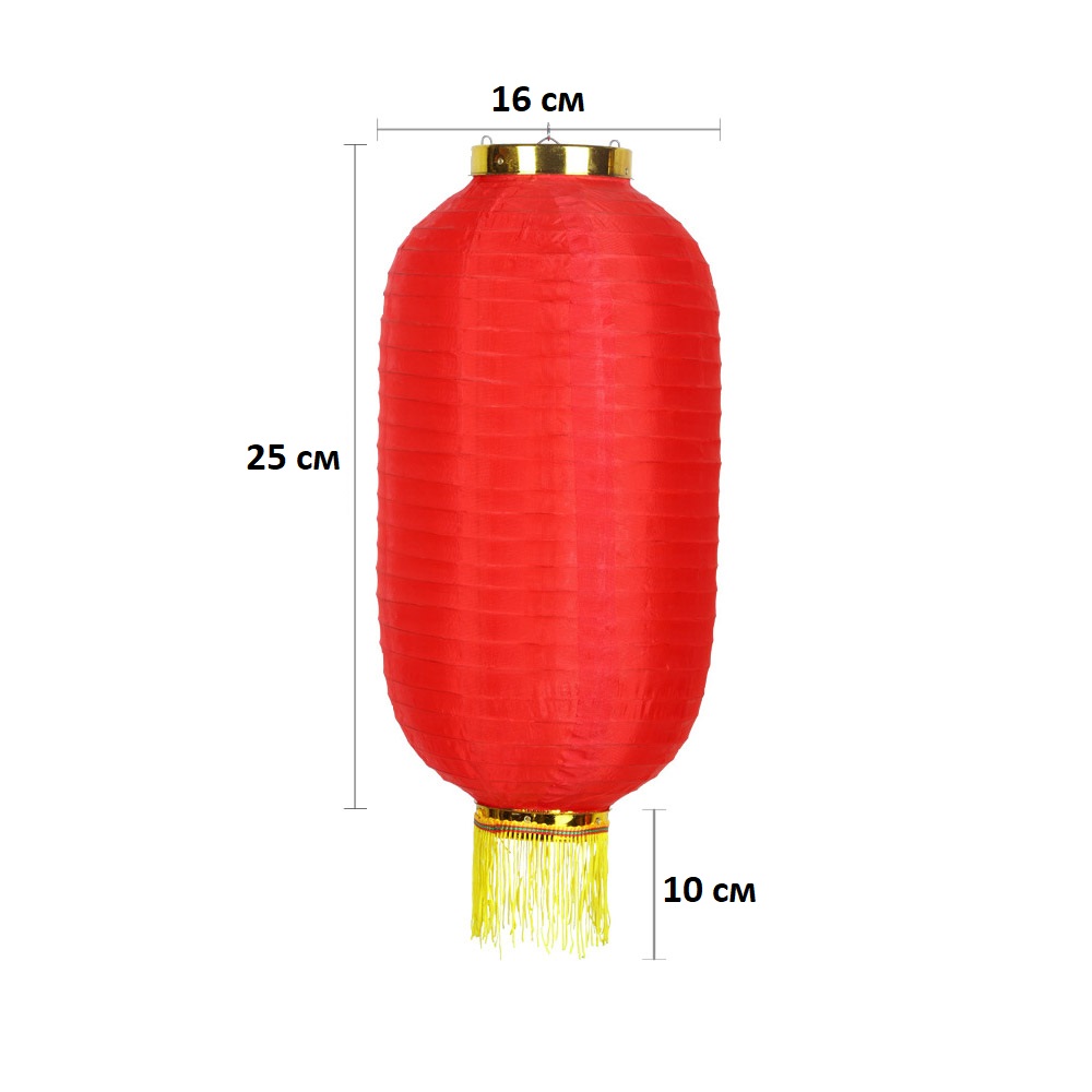 Китайский фонарь Цилиндр с бахромой 16х25 см, красный