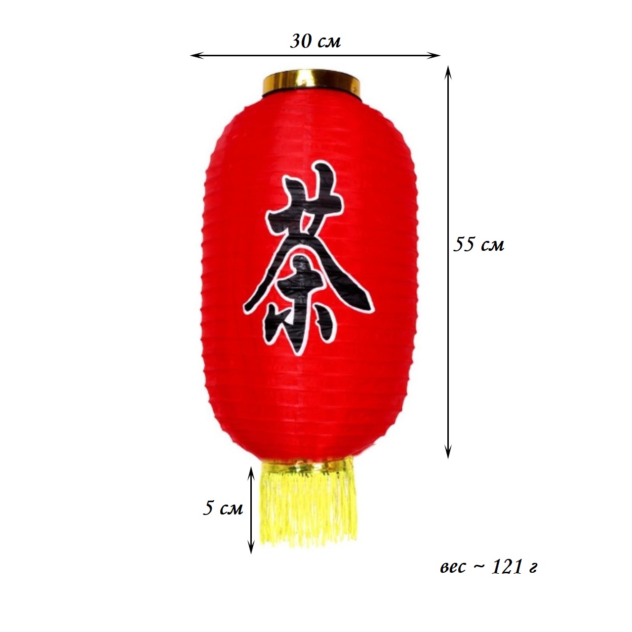 Китайский фонарь Цилиндр с надписью "Чайный" с бахромой 30х55 см, красный