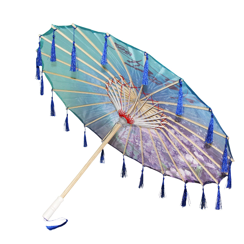 Китайские тканевые зонтики цветочные с кисточками 82х54 см