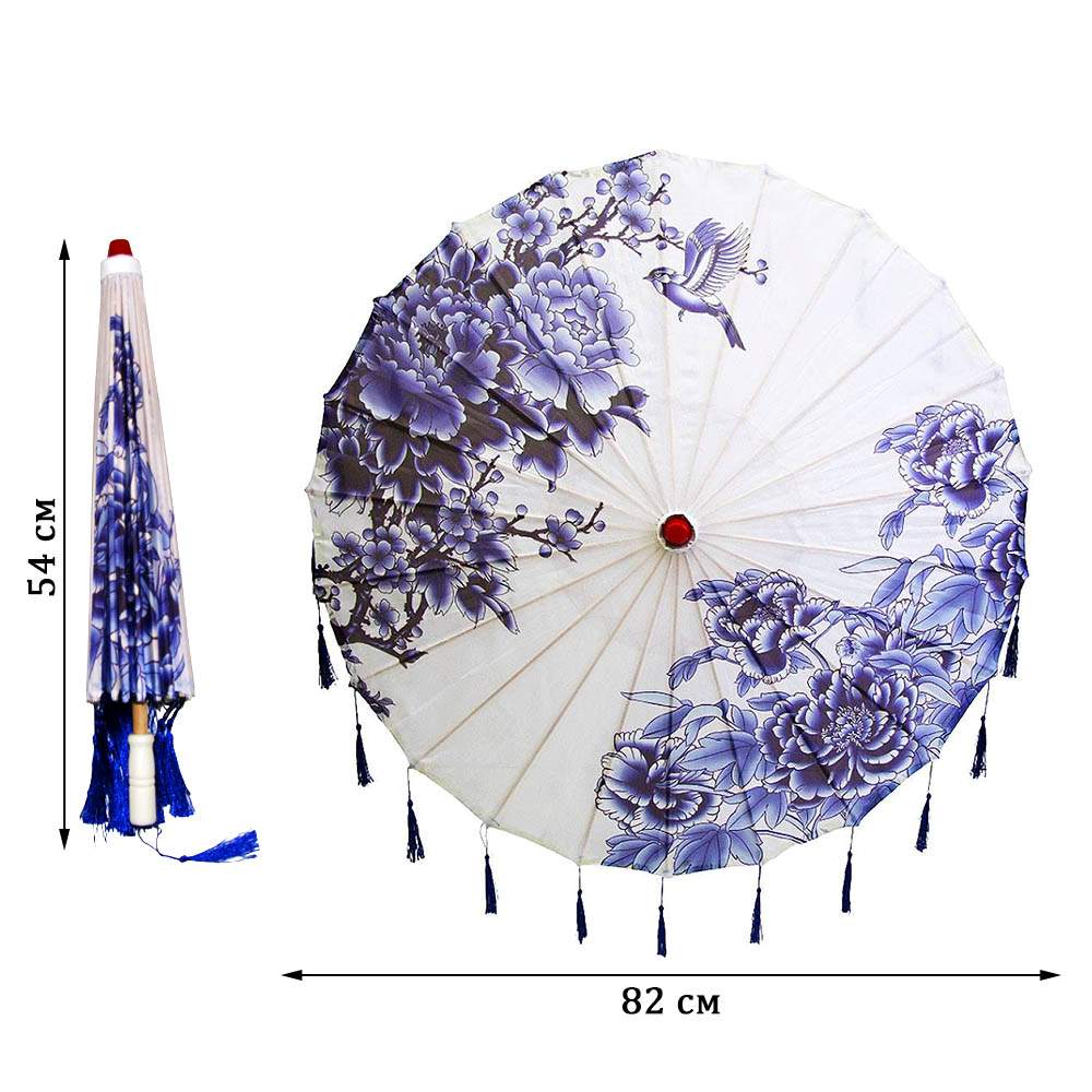 Китайские тканевые зонтики цветочные с кисточками 82х54 см