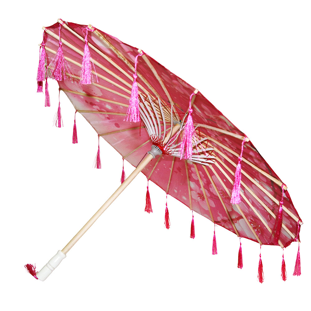 Китайские тканевые зонтики цветочные с кисточками 82х54 см