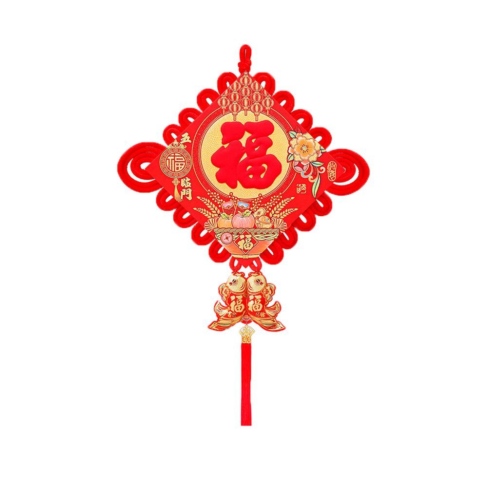 Традиционный китайский узел в форме ромба с символичным дизайном. Яркое сочетание красного бархата и золотых элементов создает эффектный акцент в интерьере.