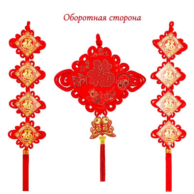 Китайский узел ромб золото НАБОР 2шт (68х112см + 23х112см) рыбки, Золотое Яблоко