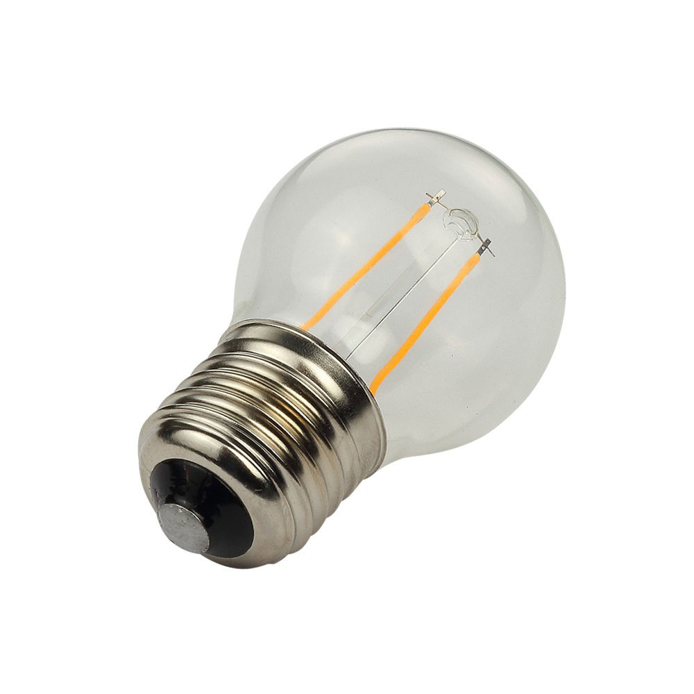 Лампа светодиодная стандарта G45 E27 с теплым светом 2700К. Потребляемая мощность в 2 Вт успешно заменяет классические лампы 25 Вт. Это экономное и выгодное решение для оформления освещаемых декоров. Характеризуется длительным сроком службы – до 25 тысяч часов.