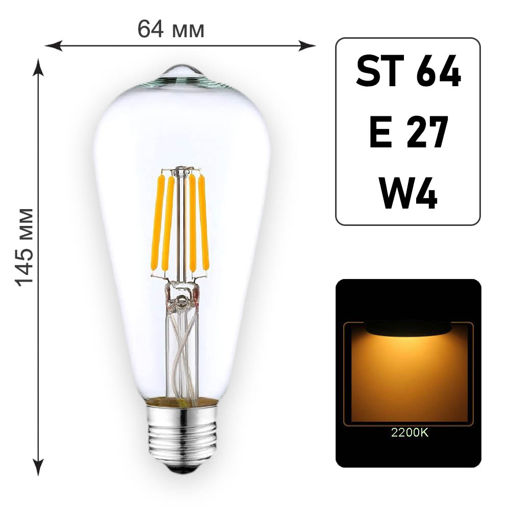 Лампа филаментная ST64 E27 W4 K2200