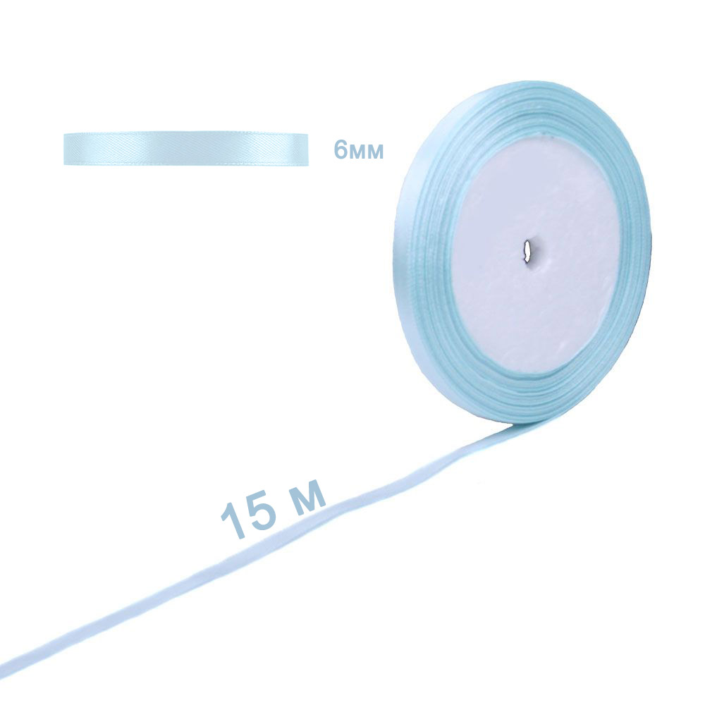 Лента атласная голубая 6 мм х 15 м
