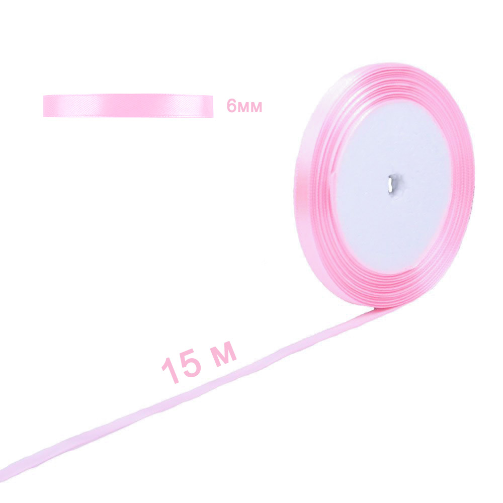 Лента атласная розовая 6 мм х 15 м
