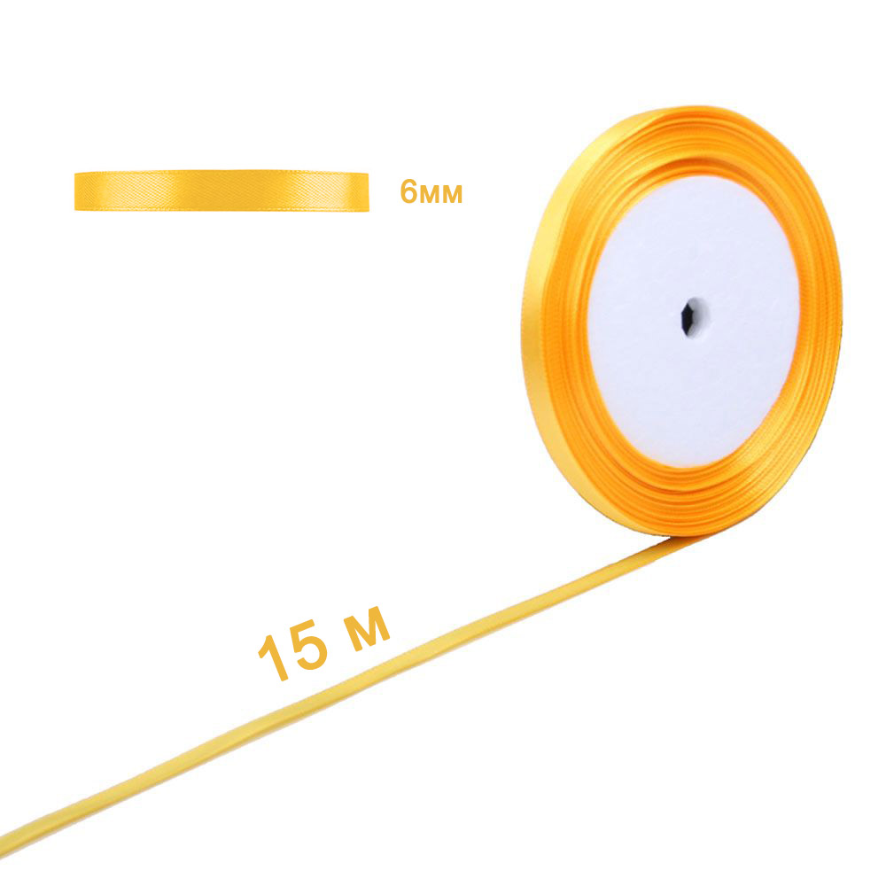 Лента атласная ярко-желтая 6 мм х 15 м