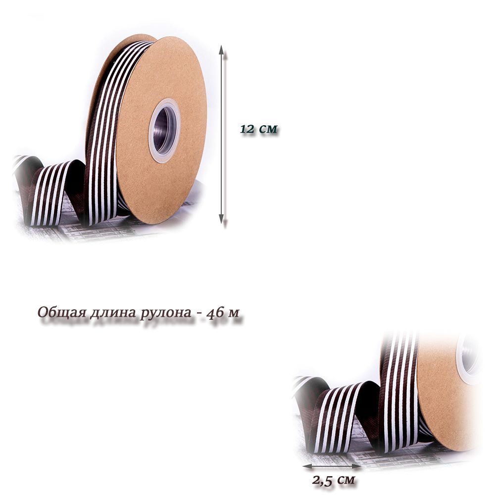 Лента репсовая коричневая 2,5см х 46м