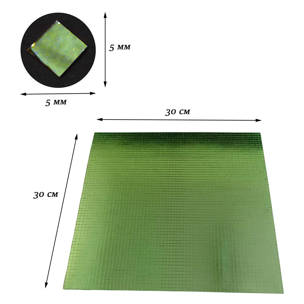 Лента самоклеящаяся зеркальная мозаика стекло, 30х30см 5х5мм, салатовый