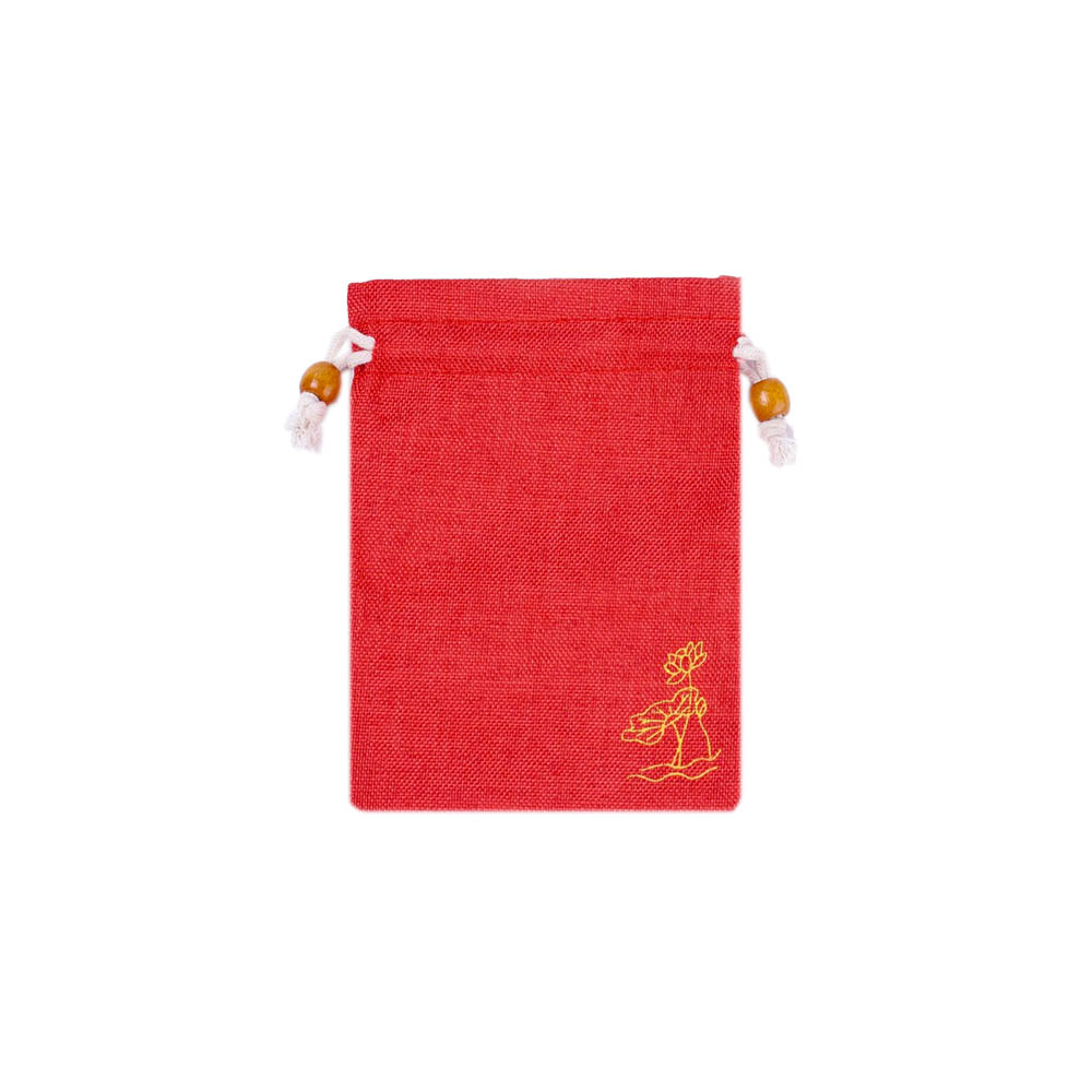 Мешочек из искусственного льна с орнаментом 10х14 см, красный