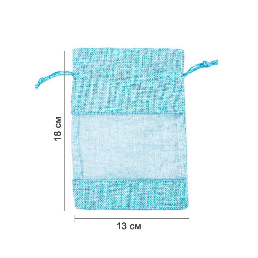 Декоративный мешочек с оригинальным дизайном: верх и дно выполнены из плотной мешковины, а центральная часть — из прозрачной органзы, благодаря чему содержимое хорошо видно со всех сторон. Такое сочетание материалов придаёт упаковке естественный, но при этом лёгкий и изящный вид.