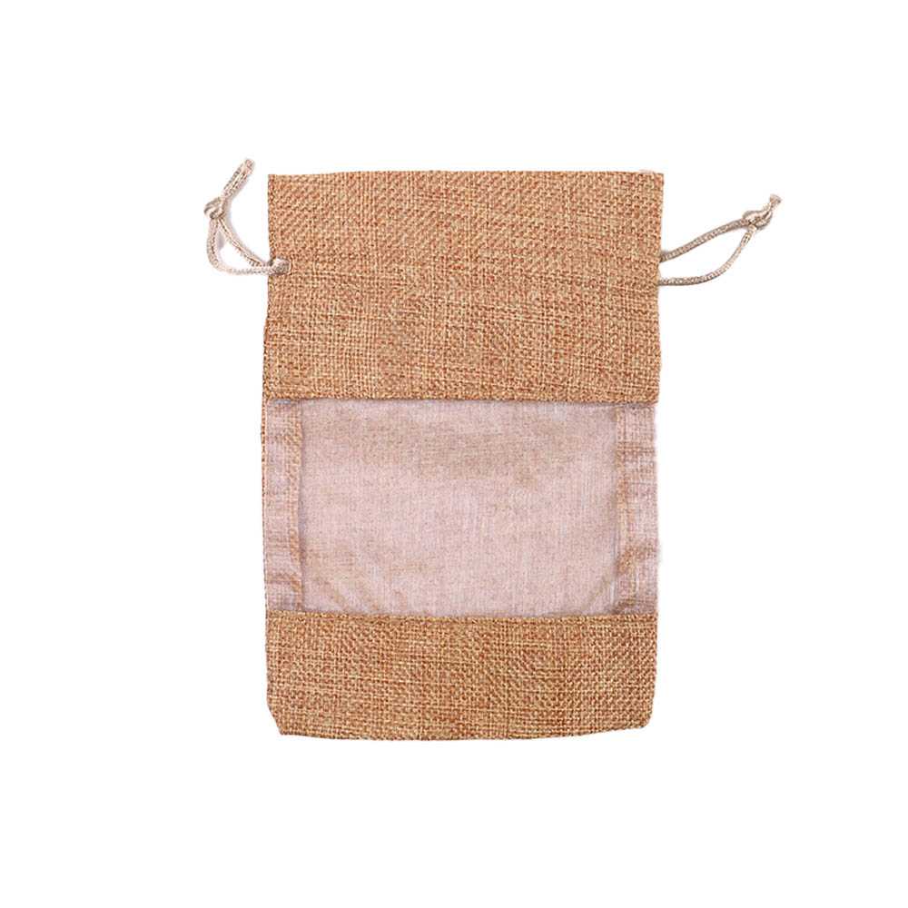 Декоративный мешочек с оригинальным дизайном: верх и дно выполнены из плотной мешковины, а центральная часть — из прозрачной органзы, благодаря чему содержимое хорошо видно со всех сторон. Такое сочетание материалов придаёт упаковке естественный, но при этом лёгкий и изящный вид.